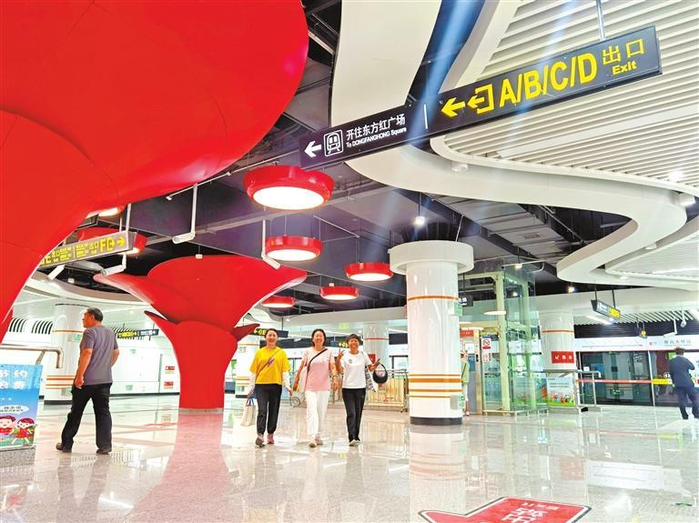 “我住在附近時(shí)刻關(guān)注著工程進(jìn)展,圍擋板拆除后,今天近距離接觸站口還是第一次。”在雁白大橋站A口,關(guān)注開(kāi)通試運(yùn)營(yíng)儀式的李阿姨抱著小孫子早早就來(lái)到地鐵站,李阿姨準(zhǔn)備當(dāng)天上午地鐵開(kāi)通時(shí),乘坐首趟列車,由雁白大橋到東方紅廣場(chǎng)感受地鐵2號(hào)線一期全程的快速與舒適。