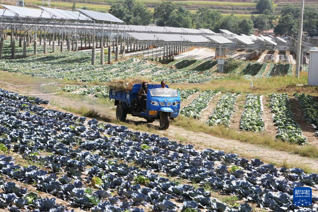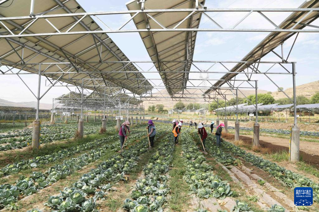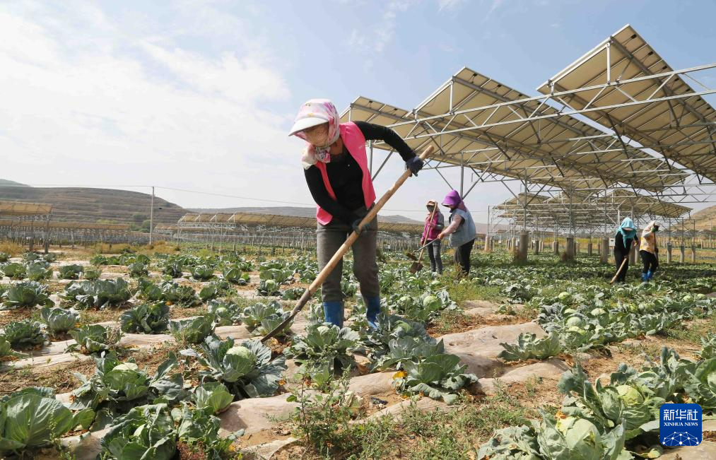 9月9日,農民在通渭縣榜羅鎮(zhèn)四新村光伏農業(yè)產業(yè)示范園的蔬菜地里勞作。新華社發(fā)(王克賢 攝)