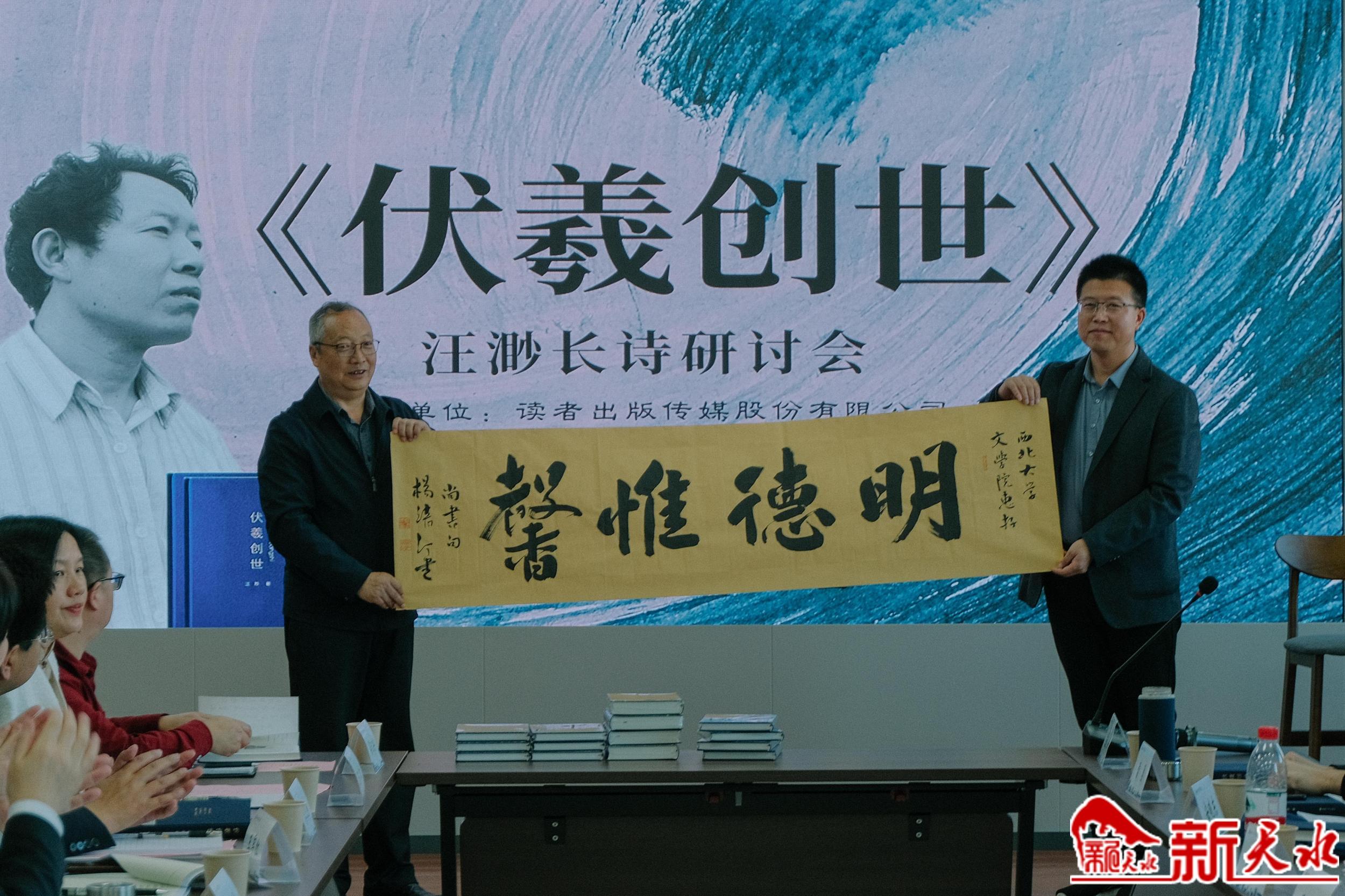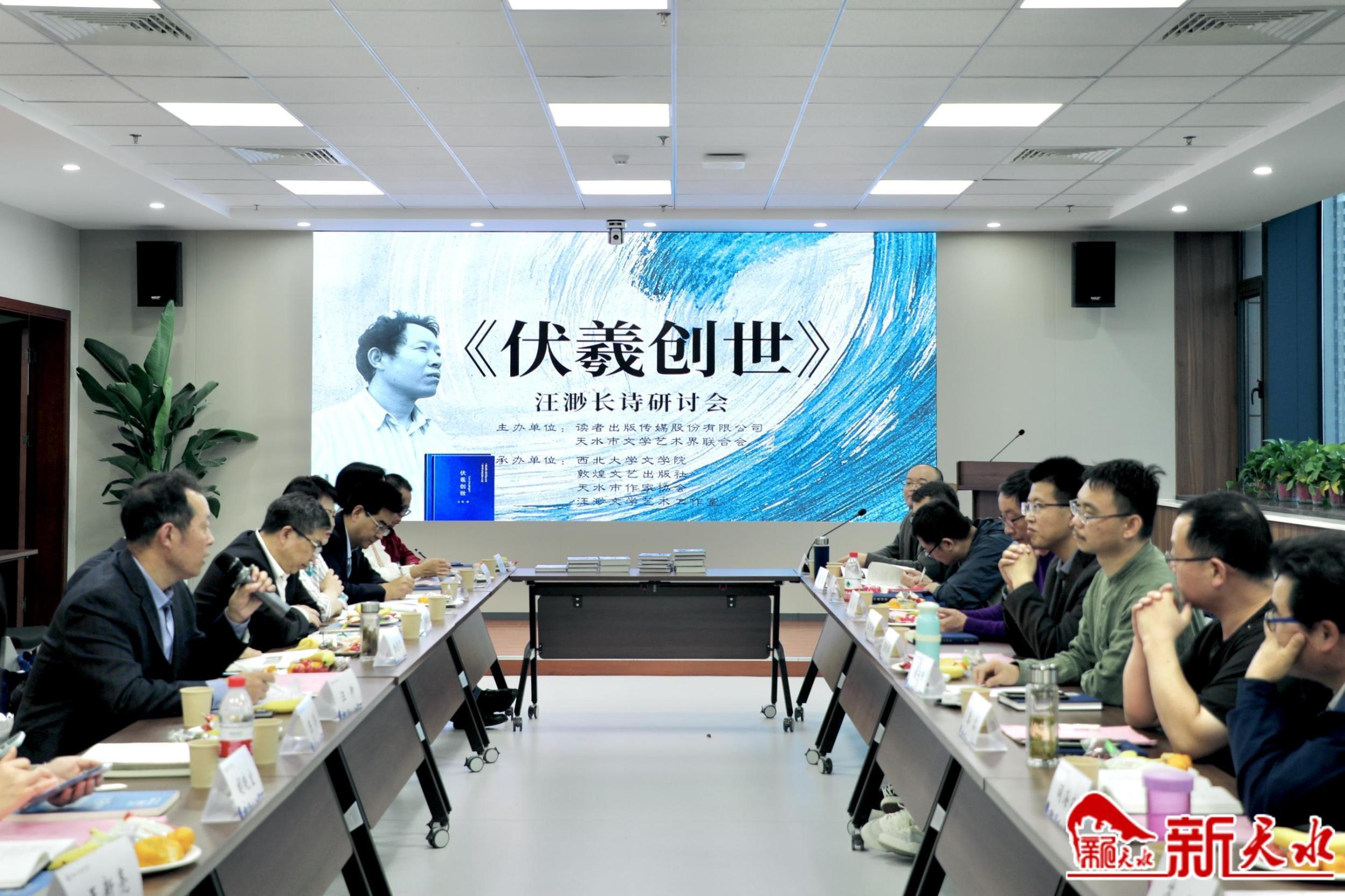 新天水訊【記者楊華 陳光毅】10月14日,天水詩人汪渺長(zhǎng)詩《伏羲創(chuàng)世》研討會(huì)在西北大學(xué)文學(xué)院舉辦。本次研討會(huì)由讀者出版?zhèn)髅焦煞萦邢薰?、天水市文?lián)主辦,西北大學(xué)文學(xué)院、敦煌文藝出版社、天水市作協(xié)、汪渺文學(xué)藝術(shù)工作室承辦。