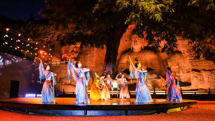 在山西云岡石窟,一場(chǎng)名為“又見云岡”的大型實(shí)景演出上演,1000余人現(xiàn)場(chǎng)觀看,近100萬(wàn)人線上觀看,人們被經(jīng)由現(xiàn)代藝術(shù)演繹的傳統(tǒng)文化之美所打動(dòng)。