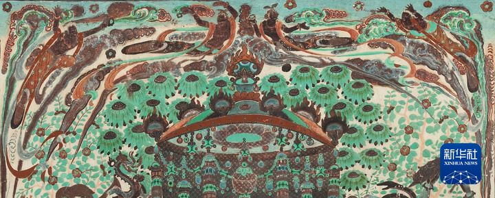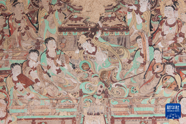 莫高窟第112窟-壁畫-主室北壁-報(bào)恩經(jīng)變之樂舞圖。(敦煌研究院供圖)