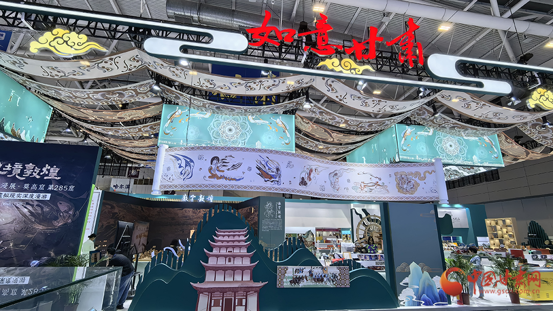 據(jù)了解,甘肅主題館位于深圳國際會(huì)展中心文化產(chǎn)業(yè)綜合展9號(hào)館,展陳面積510平方米,以主線貫穿、特色鮮明、視覺宏觀、內(nèi)容豐富為總體設(shè)計(jì)宗旨,采用敦煌壁畫中石綠為主色調(diào),頂部裝飾敦煌壁畫中藻井圖及線條,融入“九色鹿”“飛天”等設(shè)計(jì)元素,突出甘肅的歷史感和雄渾大氣。