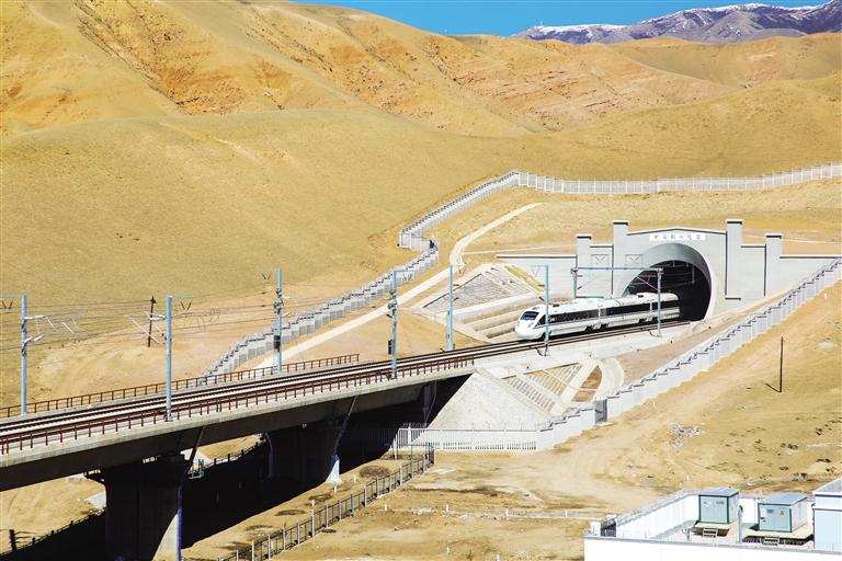 列車穿越蘭張高鐵蘭武段新烏鞘嶺隧道