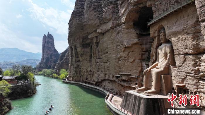 游客到訪(fǎng)參觀(guān)甘肅炳靈寺石窟。中新社記者 馮志軍 攝