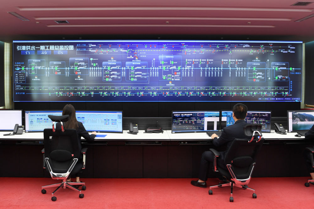 這是2021年9月6日在甘肅省引洮工程水資源利用中心調度中心拍攝的引洮供水一期工程調度現場。新華社記者范培珅攝