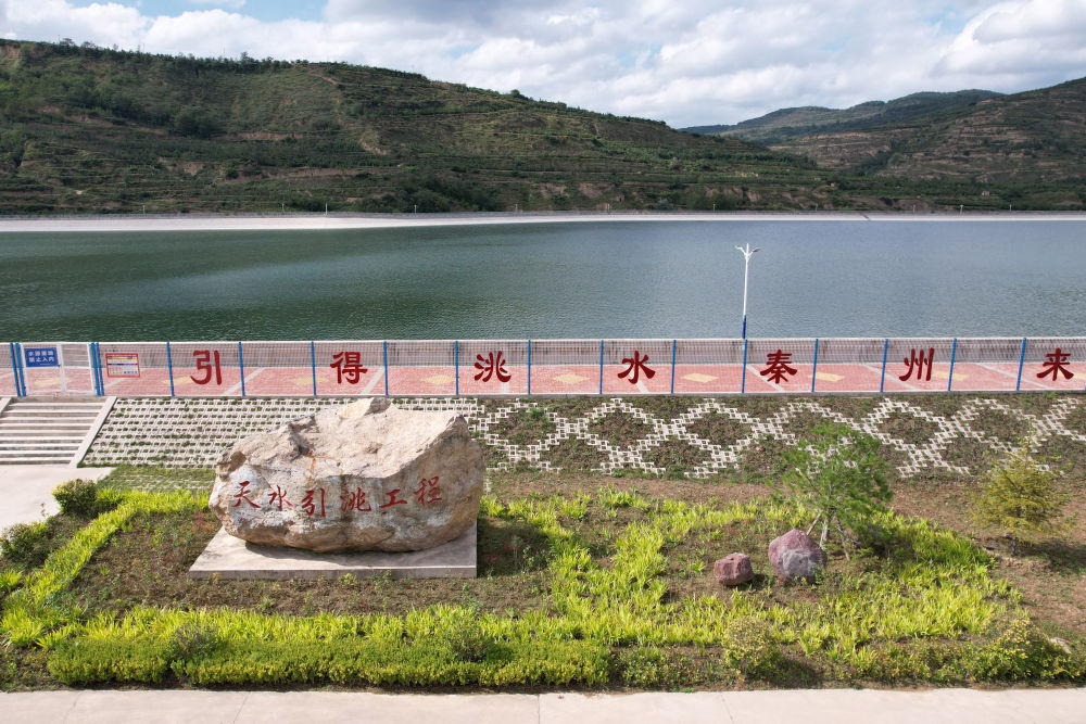 這是近日在天水市秦州區(qū)拍攝的天水市城區(qū)引洮供水工程楊家灣調蓄水池(無人機照片)。新華社記者范培珅攝