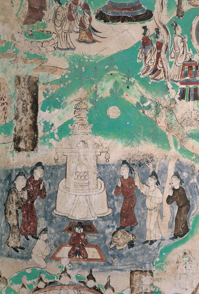 莫高窟第103窟-佛頂尊勝陀羅尼經變之拜塔-盛唐