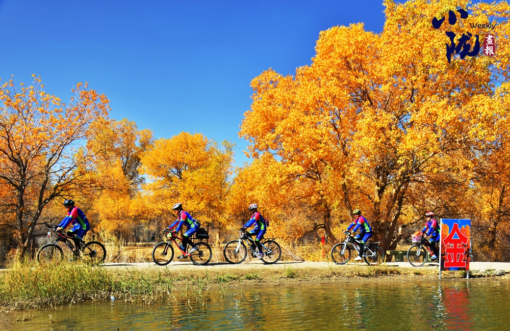 湛藍(lán)的天空、清澈的湖水、倒影的胡楊、金色的落葉,斑斕得如同油畫色彩。