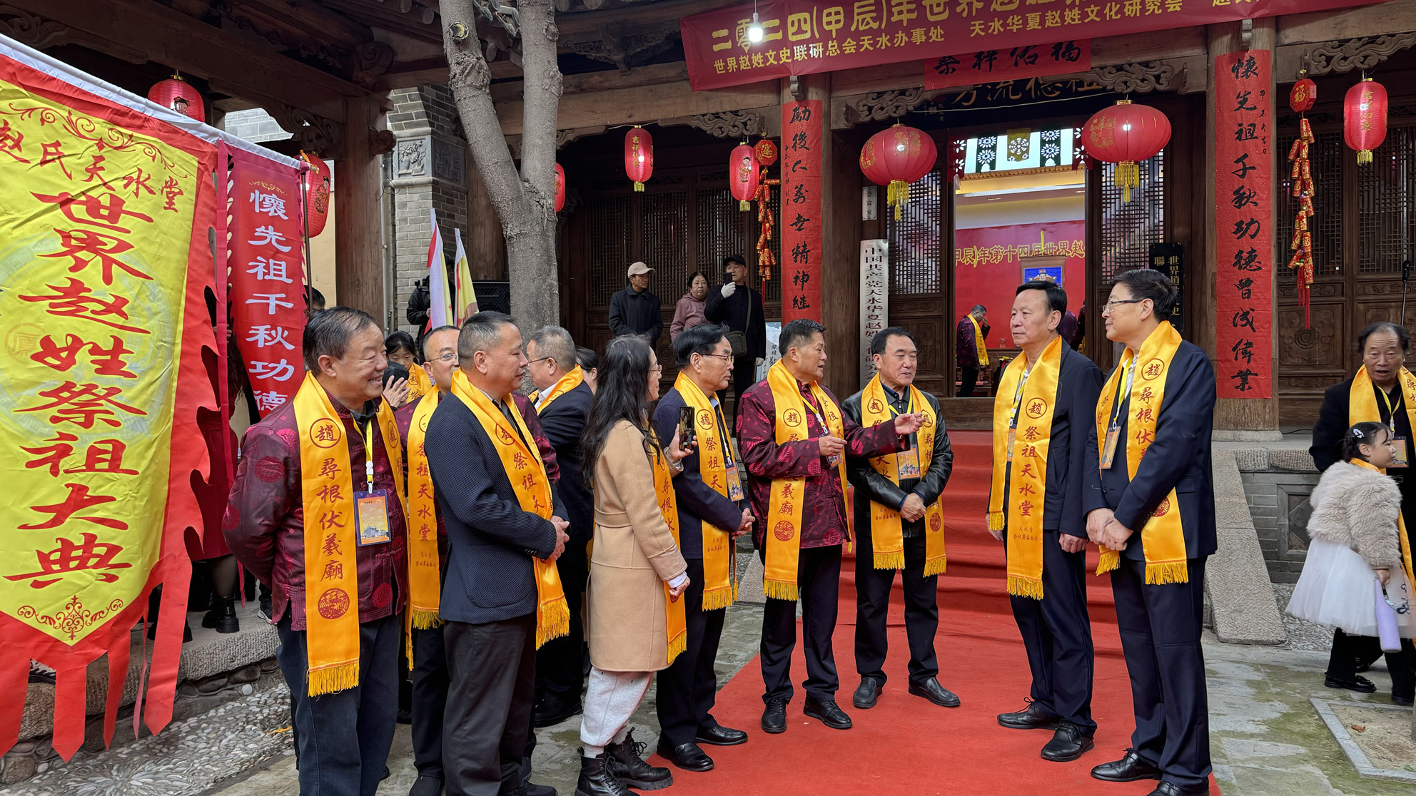 11月10日上午,由世界趙姓文史聯(lián)研總會(huì)天水辦事處、天水華夏趙姓文化研究會(huì)承辦的2024(甲辰)年世界趙姓祭祖大典在秦州區(qū)解放路趙氏天水堂舉行。來(lái)自世界各地的趙氏后裔代表相聚天水,首先在伏羲廟拜謁中華人文始祖伏羲,隨后于趙氏天水堂舉行了祭祖大會(huì)活動(dòng),尋親祭祖,祈福納祥。