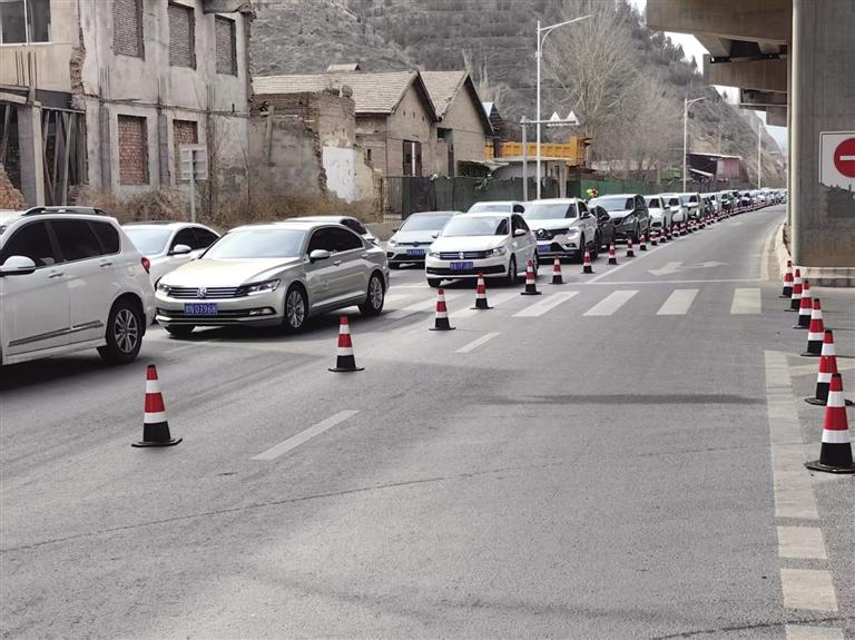 3月22日上午8時,通往大砂坪公墓區(qū)、甘肅臥龍崗人文紀念園的佛慈大街上車流量明顯增多,雖然車輛行駛速度緩慢,但整體秩序良好。在大砂坪橋公交站處準備乘坐清明節(jié)掃墓臨時專線公交車前往公墓祭掃的市民排起了長隊。墓園附近,等待進入的車輛也排起了長隊,蘭州市交警支隊河北大隊交警引導(dǎo)祭掃車輛安全進出墓園停車場,保障路面交通暢通。