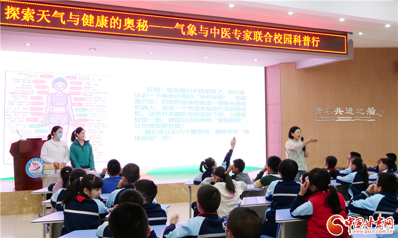 中國甘肅網(wǎng)11月6日訊(西北角·中國甘肅網(wǎng)記者 程?。┤涨埃m州市城關(guān)區(qū)一只船小學(xué)迎來了一場別開生面的科普盛宴:中醫(yī)專家與氣象工程師攜手走進(jìn)校園,以“探索天氣與健康的奧秘”為主題,為孩子們帶來了一堂融合氣象科學(xué)與中醫(yī)智慧的啟蒙課。