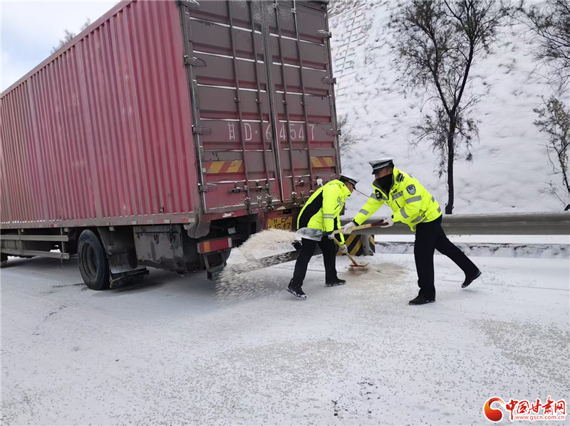 為應(yīng)對降雪影響,蘭州公安交管部門科學(xué)調(diào)配警力,在城區(qū)主次干道、國省道沿線及重點(diǎn)積雪結(jié)冰路段布設(shè)執(zhí)勤點(diǎn)位。針對解放門立交橋等橋梁隧道、長大下坡關(guān)鍵點(diǎn)位,提前預(yù)置融雪劑,聯(lián)合市政養(yǎng)護(hù)部門開展“機(jī)械除雪+人工清掃”作業(yè),確保重點(diǎn)路段“見底露面”。