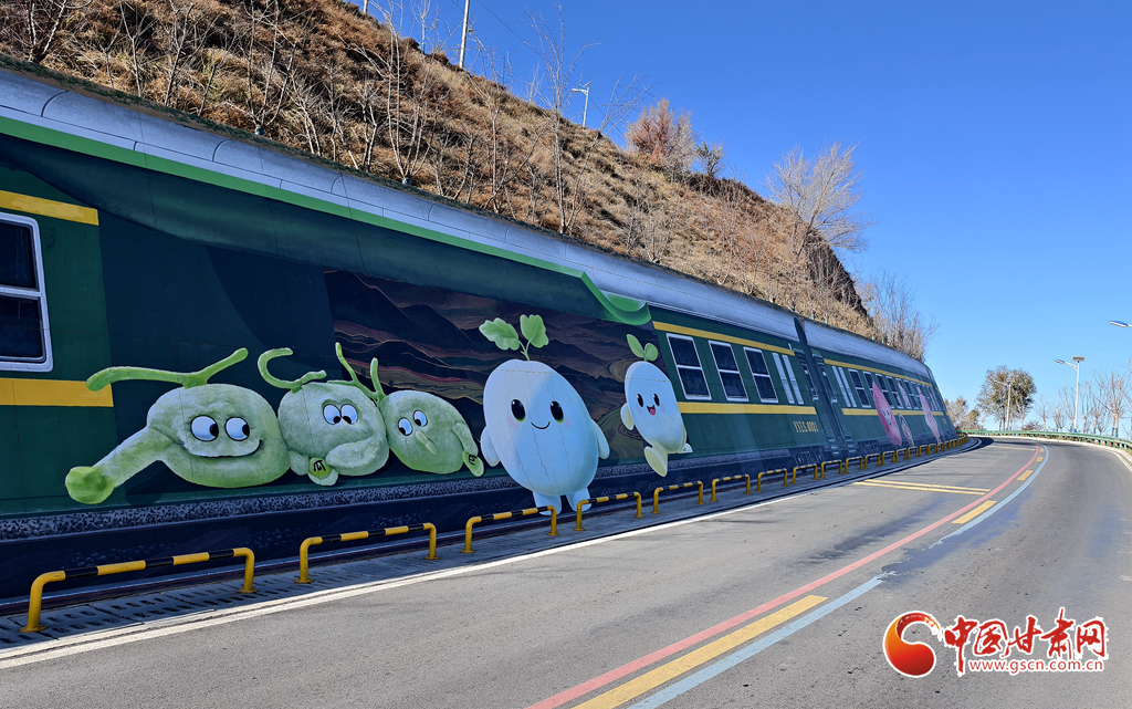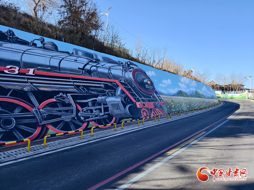 初冬蘭州蘭山,涼意漸濃,“煙雨蘭山”鄉(xiāng)村振興示范帶的童話彩繪卻讓這里成了市民的“造夢秘境”。低成本的藝術(shù)改造點亮墻面,連“0931號”蒸汽火車手繪也在此煥發(fā)光彩——車頭暖光里,Q版蘭州瓜果、土撥鼠串聯(lián)成列,宛如“童話專列”載著鄉(xiāng)愁與特產(chǎn)故事,邀人走進山間童話。