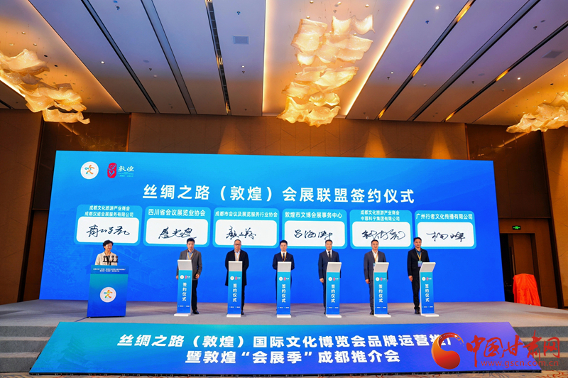 簽約儀式后,還舉行了絲綢之路(敦煌)會(huì)展聯(lián)盟(成都)推廣中心揭牌儀式,標(biāo)志著敦煌會(huì)展在成都及周邊地區(qū)推廣正式開(kāi)啟,兩地會(huì)展合作進(jìn)入常態(tài)化、機(jī)制化新階段。