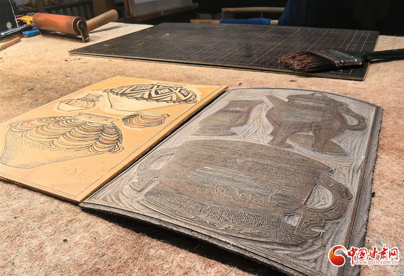 手稿繪制好了之后,就要進行硫酸紙轉稿了。趙寧耐心地解釋道:“所謂‘硫酸紙轉稿’,就是用鉛筆在硫酸紙上仔細勾描輪廓。然后再通過復寫紙,將線稿小心翼翼地轉到準備好的版面上。接著,就可以用刻刀在版面上進行刻制了。”說著,他拿起刻刀,輕輕在版面上刻下第一刀,那動作嫻熟而自信??讨仆瓿珊?,用毛刷掃刷干凈碎屑。隨后,他拿起油滾,均勻地在版面上滾墨,每一次滾動都小心翼翼,直到版面油墨均勻,才滿意地點點頭,準備進行拓印。
