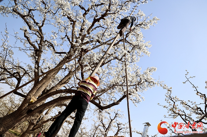 中國(guó)甘肅網(wǎng)4月9日訊(西北角·中國(guó)甘肅網(wǎng)記者 余守萱 實(shí)習(xí)生 趙曉彤)春賞梨花勝雪,秋品碩果飄香。9日上午,記者跟隨“梨韻什川·美麗皋蘭”梨花季特色文旅活動(dòng)走進(jìn)皋蘭縣什川鎮(zhèn)上車(chē)村。據(jù)介紹,這片擁有萬(wàn)畝面積、近萬(wàn)株百年以上古梨樹(shù)的“世界第一古梨園”,正悄然發(fā)生著一場(chǎng)傳統(tǒng)與現(xiàn)代交織的奇妙變化。在這里,一部手機(jī)就能解鎖梨園的前世今生,一根長(zhǎng)竿則承載著幾百年不衰的農(nóng)耕智慧。