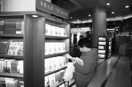 讀者在王府井書(shū)店翻看抗疫知識(shí)圖書(shū)。