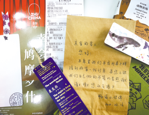 書(shū)店人為外賣訂單寫下溫暖留言。美團(tuán) 供圖