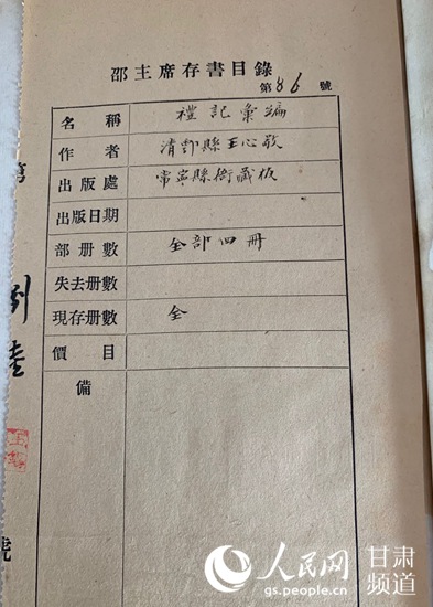 “力學(xué)廬藏書”為何保存在天水市?1937年抗日戰(zhàn)爭全面爆發(fā),日機輪番轟炸西安等城市,主政甘肅、陜西6年間自己節(jié)儉日常生活開支所搜購、珍藏的大批珍貴圖書怎樣才能免于戰(zhàn)火?邵力子先生十分焦慮。民國年間著名人士鄧寶珊、馮國瑞多次向邵力子先生“游說”,說明他們的家鄉(xiāng)天水市人文氣息濃厚、又地處西北一隅,屬抗戰(zhàn)后方,藏書環(huán)境較為安全,希望“以之捐贈天水,建館而公諸世”。經(jīng)過慎重考慮,邵力子先生決定將自己在西安的全部“力學(xué)廬藏書”運往天水,并由好友、著名學(xué)者馮國瑞負(fù)責(zé)接收、轉(zhuǎn)運。在那戰(zhàn)火紛飛的年代,要把幾十箱、數(shù)萬冊藏書從西安運到天水,確非易事。李東暉說,在當(dāng)時陜西省政府主席及秘書長、天水縣長及教育局長等人的協(xié)助下,歷經(jīng)周折、分三次才將這批珍藏轉(zhuǎn)運成功,當(dāng)時雇用鹽商的牲口、沿途由鄧寶珊將軍派部隊護送。