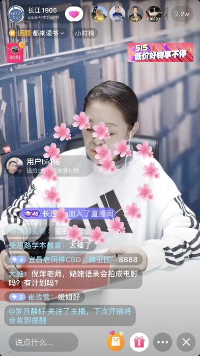 在本次直播中,倪萍與湖北新華書(shū)店、北京西單圖書(shū)大廈、四川文軒、山東臨沂書(shū)城、江蘇鳳凰新華書(shū)店五家書(shū)店連線(xiàn),還聯(lián)合線(xiàn)上主播為讀者推薦好書(shū)、推薦書(shū)店,圈粉無(wú)數(shù)。