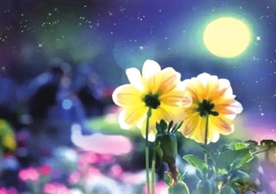 花園里的菊花正散發(fā)著一陣陣醇香樸實(shí)的氣息。似乎在這皎潔清麗的夜里,有一位芳菲馥馥的仙女在飛舞;有一種甜蜜、神圣、超自然的明澈又朦朧的力量在盤旋。