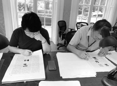 上海辭書出版社社長秦志華(右)和副總編輯張敏審讀《辭?!罚ǖ谄甙妫┬印?/font>
