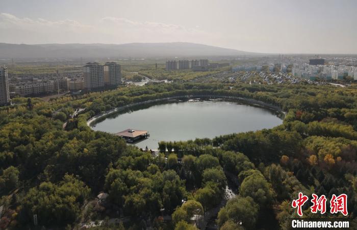 2020年7月,俯瞰甘肅嘉峪關東湖生態(tài)旅游景區(qū),該景區(qū)是國家級4A旅游風景區(qū),滿眼綠意惹人醉。(資料圖) 丁思 攝