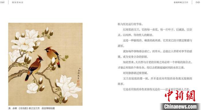 中新網(wǎng)北京4月8日電(記者應(yīng)妮)正值春深,也是紫禁城的最美時(shí)節(jié)。文華殿前絢爛的海棠花瓣飄落如雨,武英殿的丁香幽深長遠(yuǎn),御花園的牡丹含苞待放……在這春意盎然姹紫嫣紅之際,故宮出版社的新書《故宮草木志》應(yīng)時(shí)而至。