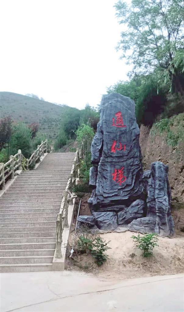 一條羊腸小道蜿蜒了千年,承載了無數(shù)游覽者匆匆的步履,在人們無數(shù)次的暢想中,化成了一條金光大道,讓老人、孩童和物資可直達寺窟門外。醒目的“通仙梯”石刻指引人們沿著游步道拾級而上,領(lǐng)略綠樹掩映、曲徑通幽的絕好勝景,金黃的葉子在濃密的綠葉間格外鮮亮,松樹和柏樹你擠著我,我挨著你,密密匝匝,在五月的陽光和微風(fēng)中,吟唱著生命的贊歌。白色槐花香氣馥郁,紅色槐花鮮艷奪目,它們從高高的枝頭垂下來,或從山崖斜伸而出,或與游人摩肩而過,或者親呢的撫摸一下游人的笑臉。掩映綠樹中的亭子,是一道絕好的景觀,讓人產(chǎn)生一種遐想和逗留的念想。亭子旁叫不出名的小鳥輕盈的飛舞和歡快的鳴叫,增添了一種活潑美妙的情趣。這情趣給花樹、亭子帶來一種靈性,頻添了無限韻味和妙趣。