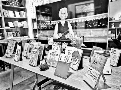 書店正中擺放著一個巨大的電視屏幕,正在循環(huán)播放著卓別林的喜劇電影《城市之光》經(jīng)典片段,屏幕前面擺放著各類被重點(diǎn)推薦的新書。“這本《笑的科學(xué)》是比較有學(xué)術(shù)性的書;這本《我思故我笑》,是講哲學(xué)和幽默的書;這本《世界上最壞的貓》,我們還為它搭配了一個黑貓玩具,這樣看起來比較吸引人。”書店主理人豈航向北青報記者介紹道,
