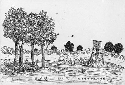 劉衍淮考察途中的畫作《額濟(jì)納河畔的觀測站》 (1927年9月28日)