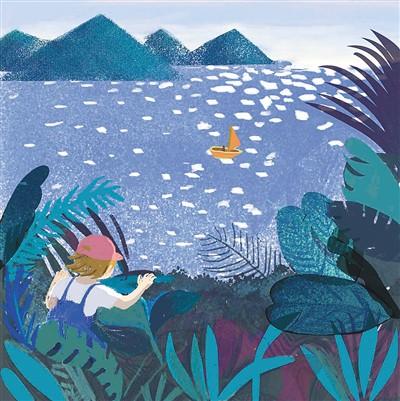 在遠(yuǎn)離故鄉(xiāng)的城市里,我的心無(wú)處可去。身處故鄉(xiāng)的時(shí)候,我們總眼望遠(yuǎn)方,“然而/那未知的風(fēng)景才是我向往的/哪怕它已落花滿地/哪怕它已人去樓空”。我喜歡這四句,因?yàn)樗欠N平靜而堅(jiān)決的向往,寥寥幾句卻直透人心。這首詩(shī)的配圖是樹(shù)叢中的孩子遠(yuǎn)眺平靜湖面上一艘小船,粼粼的湖面像藍(lán)灰色的操場(chǎng)一樣平實(shí),就像無(wú)聲的邀請(qǐng)。但當(dāng)我們走到遠(yuǎn)方,故鄉(xiāng)又會(huì)成為心頭揮之不去的念想。