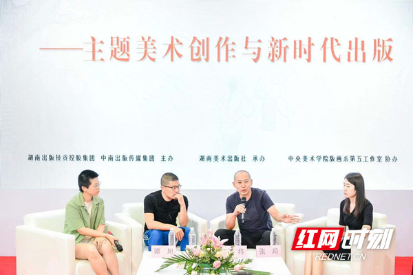 湖南省委宣傳部部務(wù)會(huì)成員、省政府新聞辦副主任于金旺,湖南美術(shù)出版社社長(zhǎng)、總編輯黃嘯出席活動(dòng)并致辭,中央美術(shù)學(xué)院教授、碩士生導(dǎo)師康劍飛,以及中央美術(shù)學(xué)院版畫系第五工作室主任武將等領(lǐng)銜的《少年毛澤東》創(chuàng)作團(tuán)隊(duì)帶來(lái)創(chuàng)作分享。