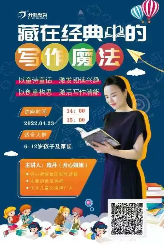 書香潤(rùn)校園·一堂開心讀寫魔法課,以童詩(shī)童話,激活孩子的閱讀興趣以創(chuàng)意構(gòu)思,激活孩子的寫作潛能快來掃碼預(yù)約直播吧。