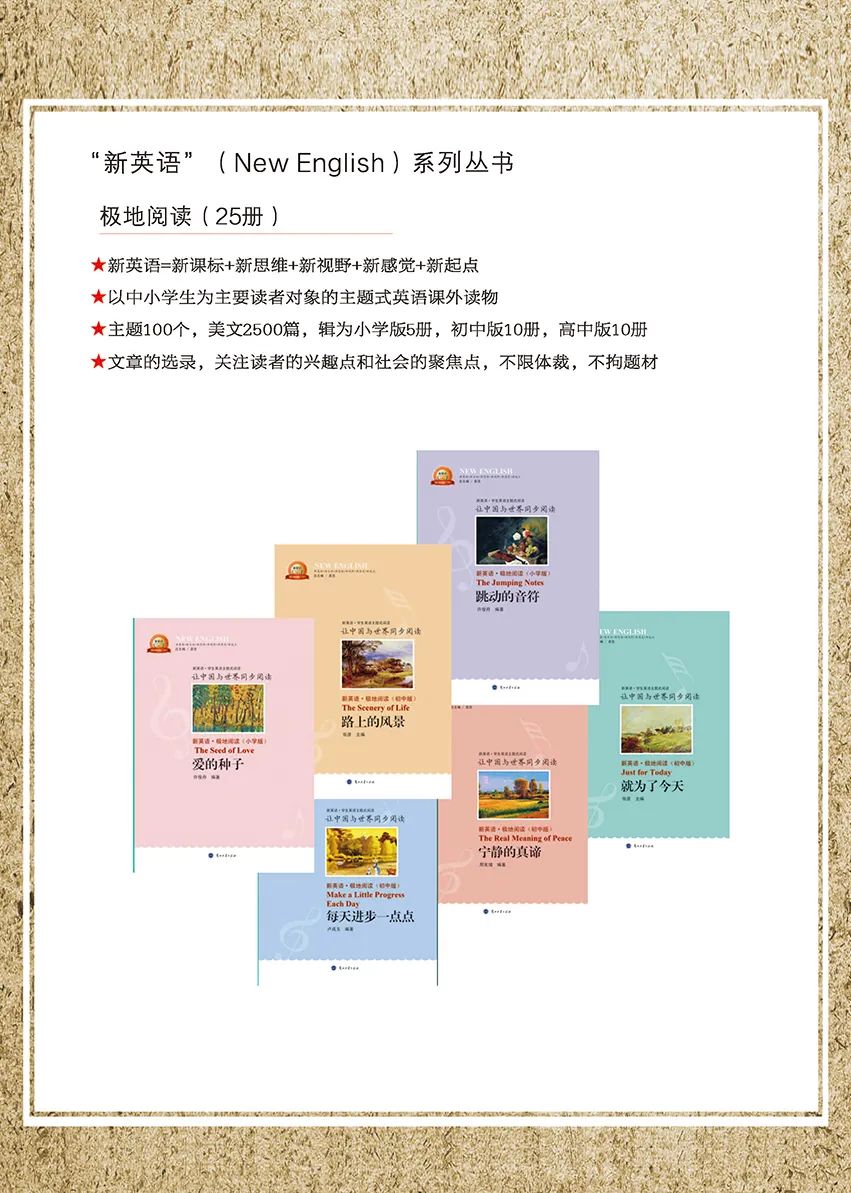 涉及與中小學生學習、生活、成長密切關聯的主題100個、美文2500篇,并依照難易梯度,輯為小學版5本,初中版10本,高中版10本。