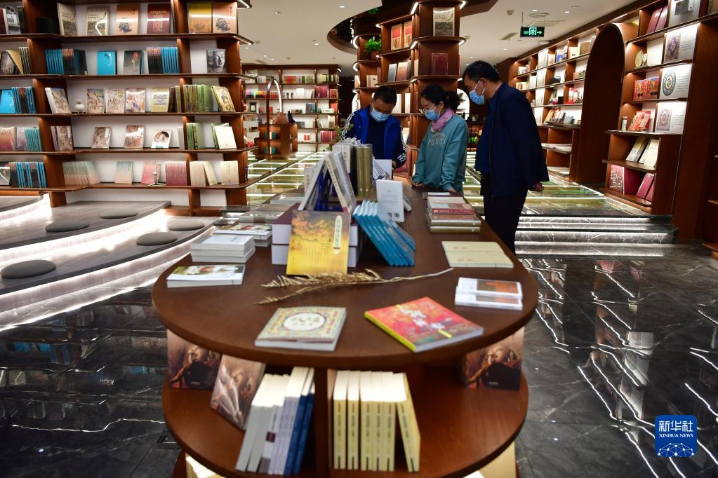 讀者在敦煌書局閱讀區(qū)看書(4月21日攝)。新華社記者 杜哲宇 攝