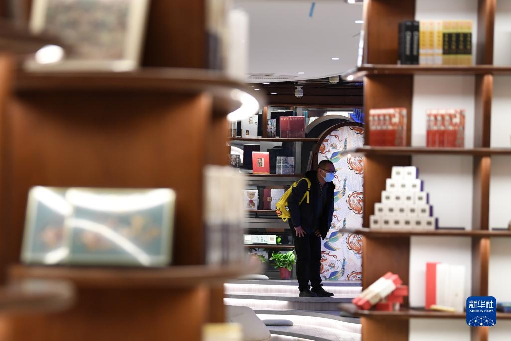 讀者從敦煌書局的書架旁走過(4月21日攝)。新華社記者 陳斌 攝