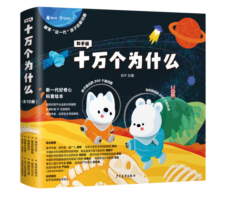 不是所有的科普讀物,都能叫《十萬(wàn)個(gè)為什么》。1961年至今,《十萬(wàn)個(gè)為什么》累計(jì)發(fā)行量近2億冊(cè),是至今仍未被超越的現(xiàn)象級(jí)科普?qǐng)D書。這套書在普及和傳播科學(xué)知識(shí)方面,發(fā)揮了非常積極的作用,影響了中國(guó)幾代青少年,堪稱是新中國(guó)影響力最大的青少年科學(xué)啟蒙讀物。作為國(guó)民級(jí)科普經(jīng)典,《十萬(wàn)個(gè)為什么》誕生至今已經(jīng)60多年。盡管已經(jīng)有了之前版本的《十萬(wàn)個(gè)為什么》,但是時(shí)代是不斷進(jìn)步的,特別是進(jìn)入數(shù)碼時(shí)代以后,孩子們比以往的所有時(shí)代,擁有著更多的信息和知識(shí),腦袋瓜里也萌發(fā)著更新的問題和疑惑。他們發(fā)出的越來越多“超綱”問題,是以前的課本、科普書上沒有的,也讓父母?jìng)兘?jīng)常面對(duì)“不知如何作答”的情況。新的“為什么”,需要新的解答。在少兒經(jīng)典科普《十萬(wàn)個(gè)為什么》出版60周年之際,知乎攜手上海少年兒童出版社,收集當(dāng)代孩子的真問題,邀請(qǐng)各領(lǐng)域機(jī)構(gòu)和專家為孩子們寫下新答案,推出了全新的知乎版《十萬(wàn)個(gè)為什么》,盡量讓孩子們的問題都有答案。