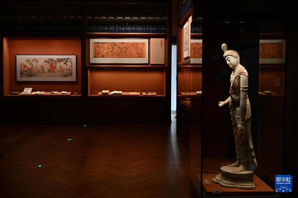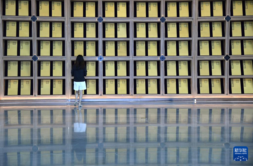 這是在北京拍攝的中國國家版本館中央總館內的展覽陳設(7月23日攝)。
