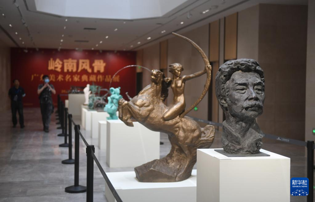 中國國家版本館廣州分館里展出的雕塑作品(7月22日攝)。