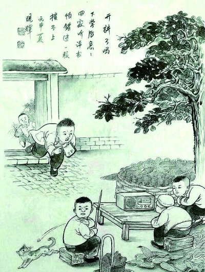 劉現(xiàn)輝的一套四冊繪畫作品《童年那些事兒》(花山文藝出版社出版),就是一次目光穿越時(shí)光阻隔,對(duì)童年和故鄉(xiāng)的深情佇望。經(jīng)由長久而專注的凝視,一縷縷游絲般輕淡的鄉(xiāng)思,逐漸擴(kuò)展匯聚成一種濃郁的故土深情,仿佛滿天云錦,在靈魂的天空閃現(xiàn)著動(dòng)人的光華。