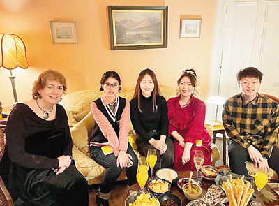 到愛爾蘭人家中做客、共度圣誕節(jié),對張靜瑄來說是新鮮的體驗(yàn)。“那天晚上,我嘗到了許多圣誕節(jié)的特色美食,比如烤火雞、布丁等,我們幾名中國學(xué)生帶去了餃子,和老爺爺、老奶奶一同分享。席間,我們聊到春節(jié)和圣誕節(jié)的慶祝方式、對東西方家庭的意義等,這讓我切身體會到了不同國家的文化差異,也拓展了我的認(rèn)知,是我難忘的珍貴回憶。”周姝蕓