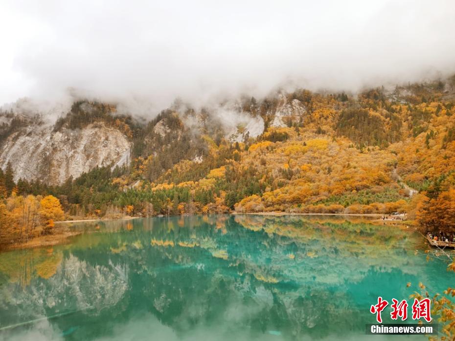 資料圖:深秋時節(jié)的九寨溝景區(qū)滿山的彩林與碧藍的海子交相輝映,宛如一個色彩繽紛的童話世界。曹惠君 攝