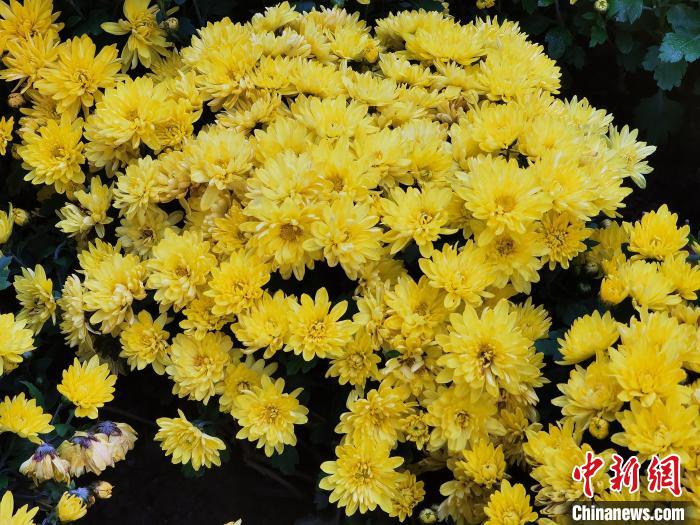 資料圖:圖為擺放在街頭的菊花?!∑钤鲚?nbsp;攝