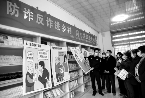 圖為在楊花橋村農(nóng)家書屋內(nèi),民警向老人宣傳電信詐騙、養(yǎng)老詐騙等防詐知識,提升農(nóng)村老人識騙能力。