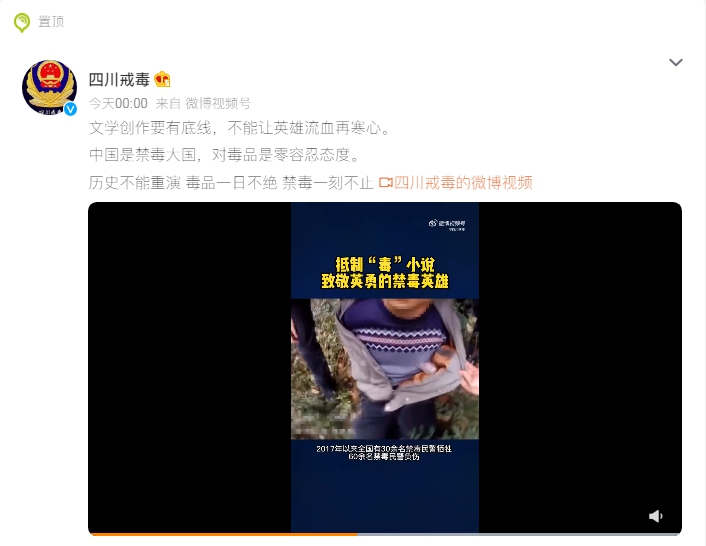 四川省戒毒管理局在此次發(fā)聲中表示,中國(guó)是禁毒大國(guó),是世界上列管毒品最多、管制最嚴(yán)的國(guó)家,對(duì)毒品是零容忍態(tài)度。面對(duì)暴戾的毒販,緝毒警察每一次抓捕都以命相搏。聲明強(qiáng)調(diào),抵制“毒”小說(shuō),致敬英勇的禁毒英雄。