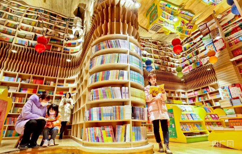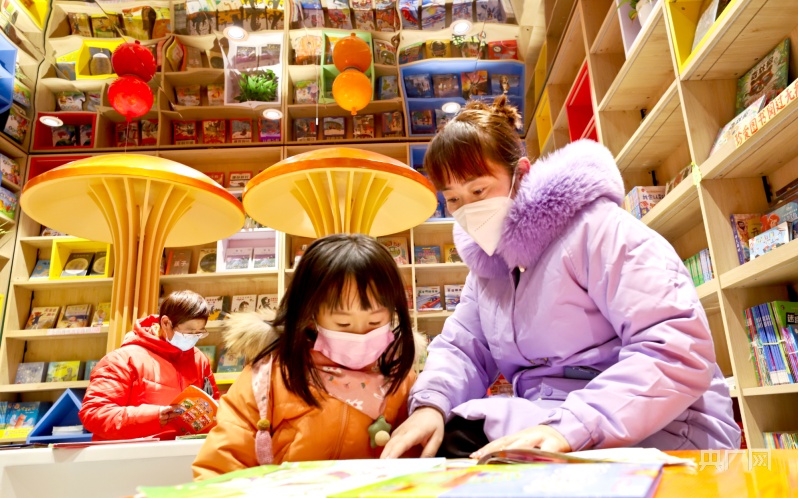 1月23日,甘肅省張掖市甘州區(qū)眾多市民帶著孩子走進(jìn)書(shū)城讀書(shū)。(央廣網(wǎng)發(fā) 王將 攝)