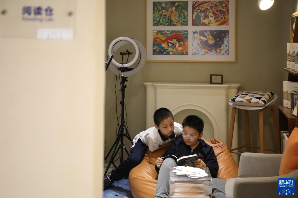 4月1日,在甘肅省蘭州市的讀者出版集團(tuán)數(shù)字閱讀中心讀者小站,小朋友在多功能閱讀倉讀書。新華社記者 馬希平 攝