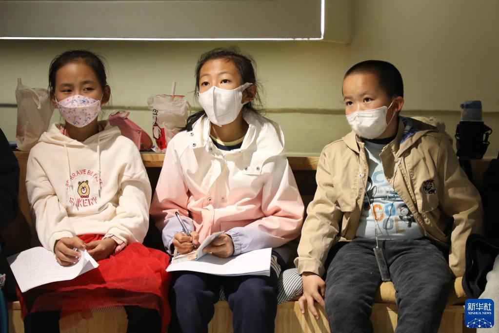 4月1日,在甘肅省蘭州市的讀者出版集團(tuán)數(shù)字閱讀中心讀者小站,小朋友聆聽老師的閱讀分享。新華社記者 馬希平 攝