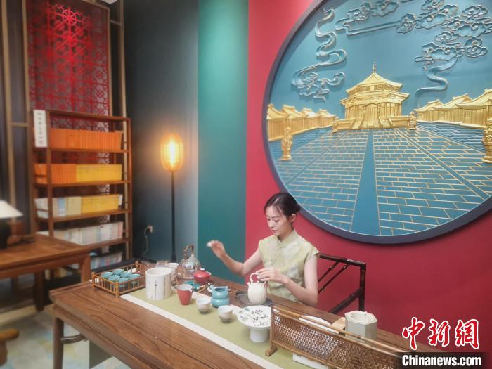 中新網(wǎng)沈陽4月19日電(記者 趙桂華 王藝霖) 中式園林的實(shí)景幕墻掩映著古風(fēng)桌椅、宮廷地?zé)簟⒅惺綍艿任⒕坝^,讓讀者暢游書海的同時(shí),仿佛置身中國古代書院書房之中。
